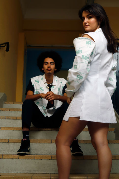 C’est vrai que ce motif est la base de mon travail. Dans la volonté d’apporter de la reconnaissance aux différentes personnes qui ont permis d’arriver à ce résultat, j’ai cherché un moyen efficace me permettant de les identifier facilement et distinctement. Comme on le sait, dans le monde de l’art principalement, l’artiste signe systématiquement son oeuvre afin d’attester son passage sur la toile, c’est pourquoi j’ai décidé de faire de même sur mes pièces vestimentaires. De la même façon que l’on peut retrouver le monogramme CD sur les créations de la maison Dior, on retrouve sur celles-ci les initiales de chaque homme et femme qui ont participé activement à la conception.